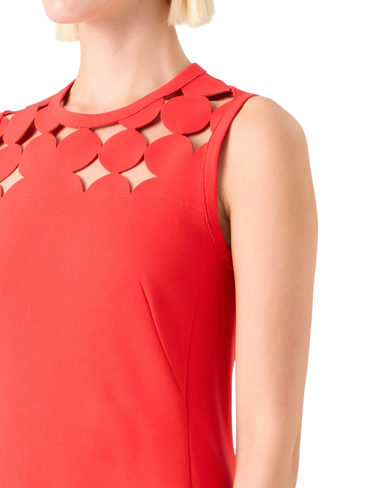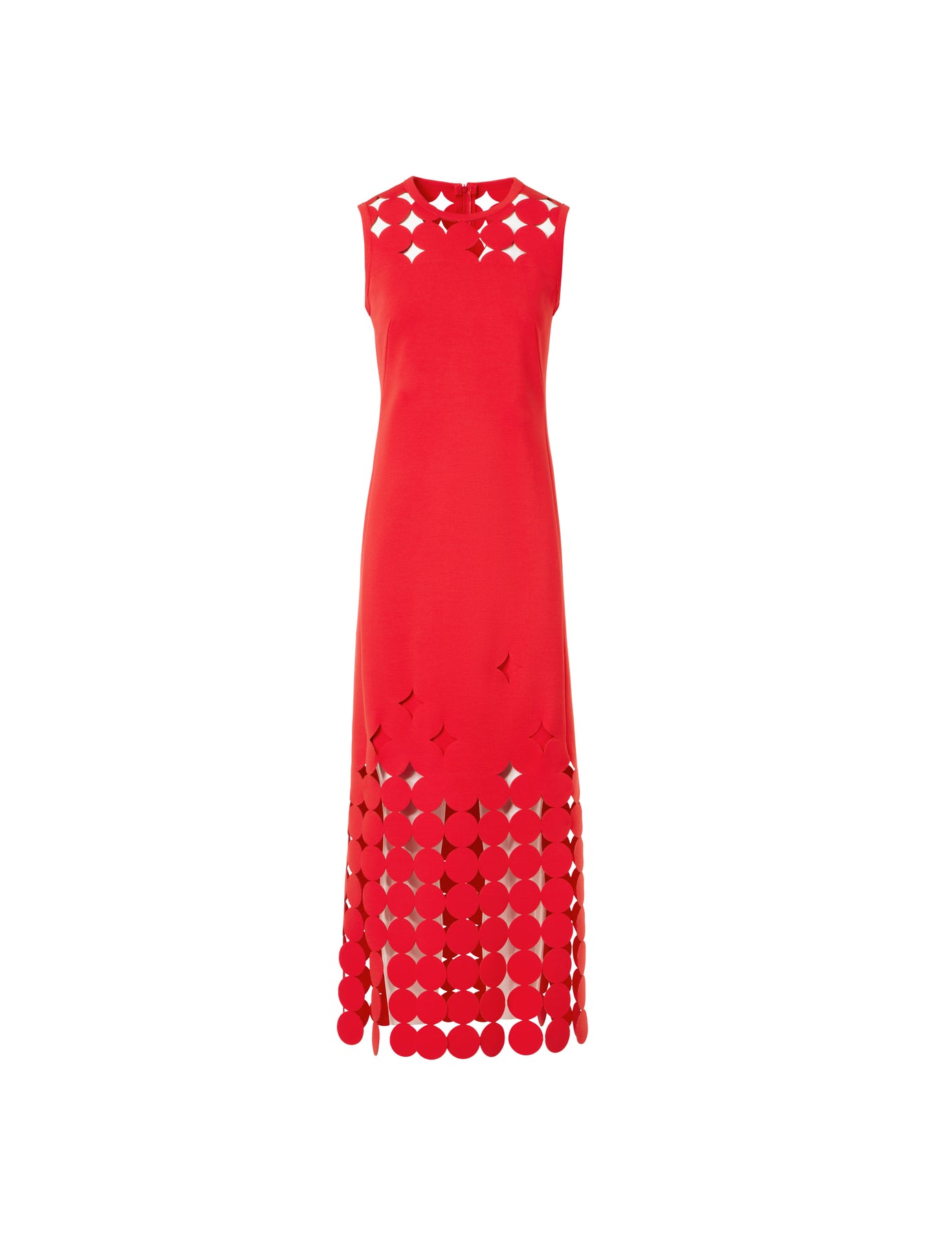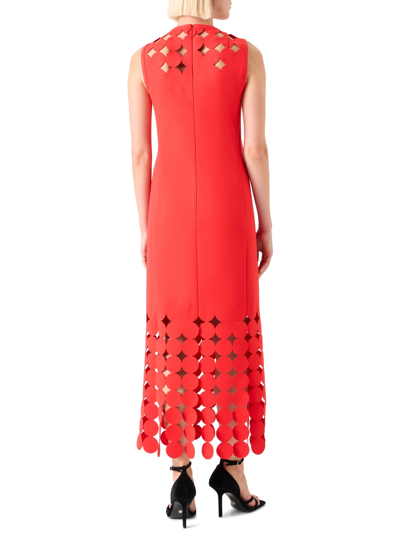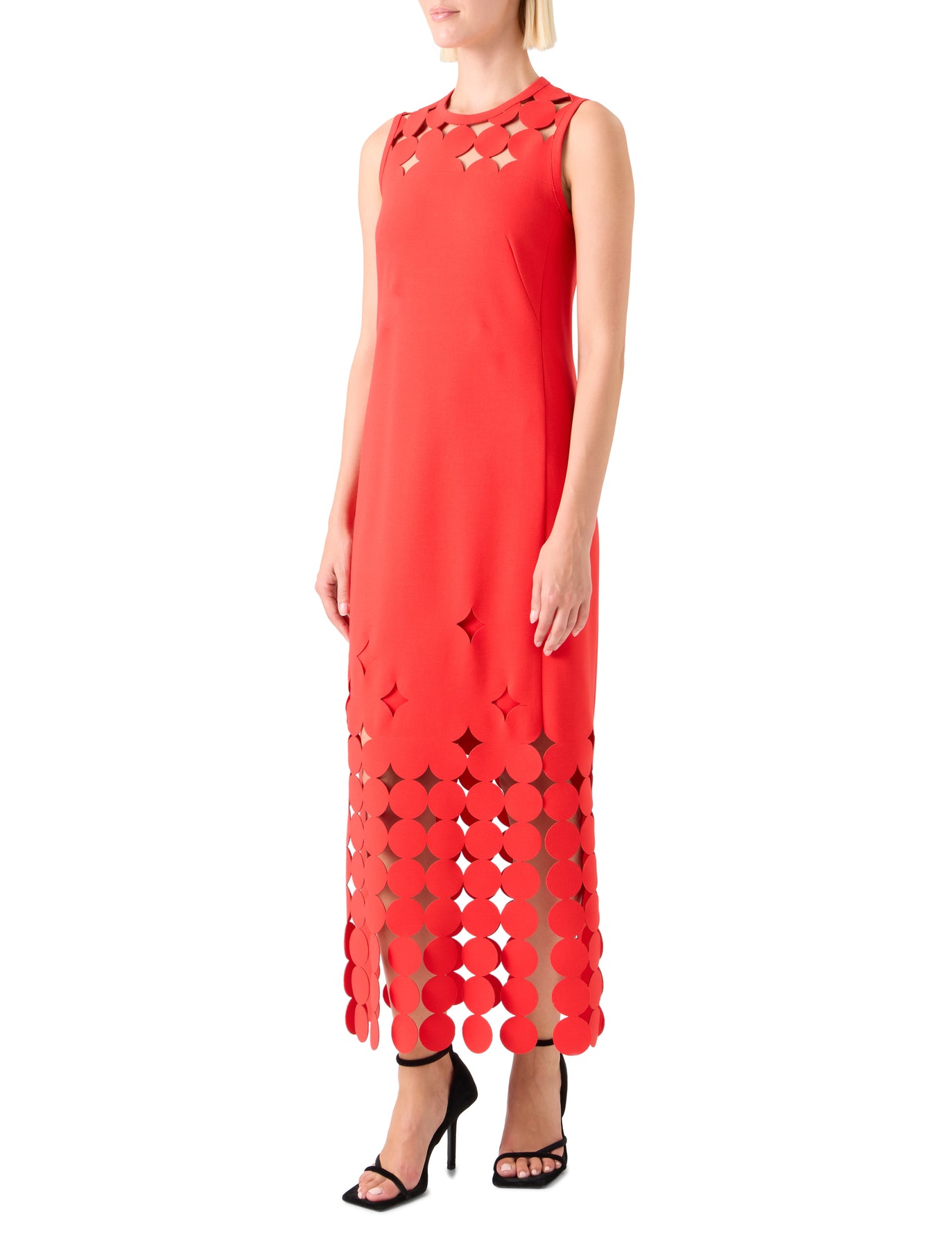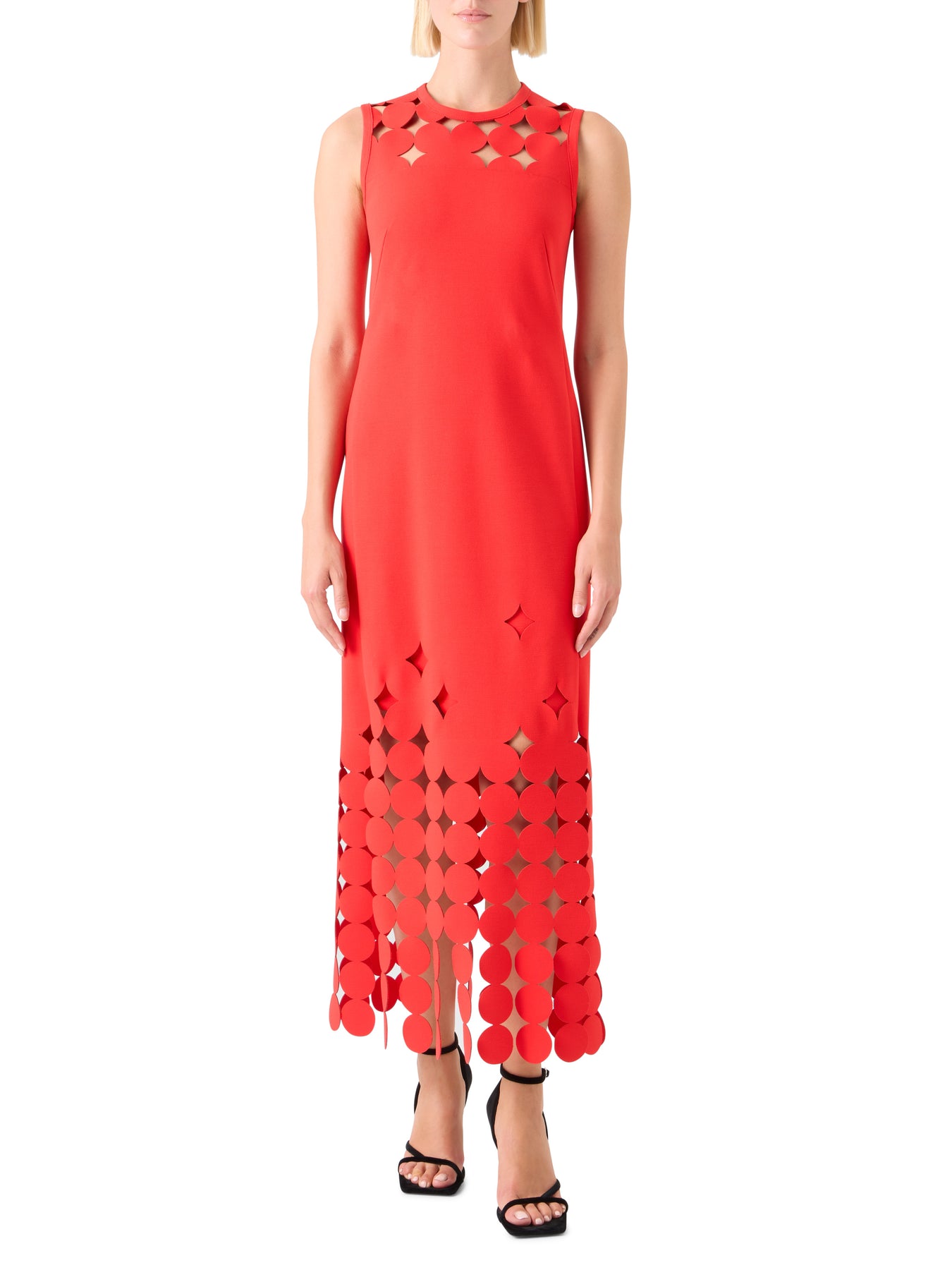 Maxi sheath dress by Akris Punto with a diamond and dot cutout on the neck and hemline.