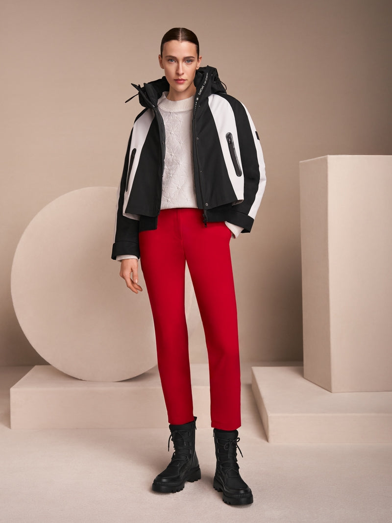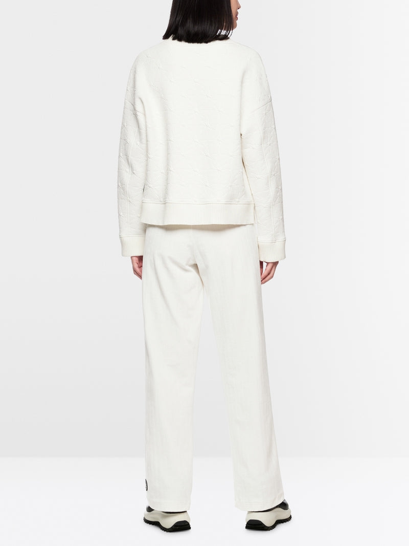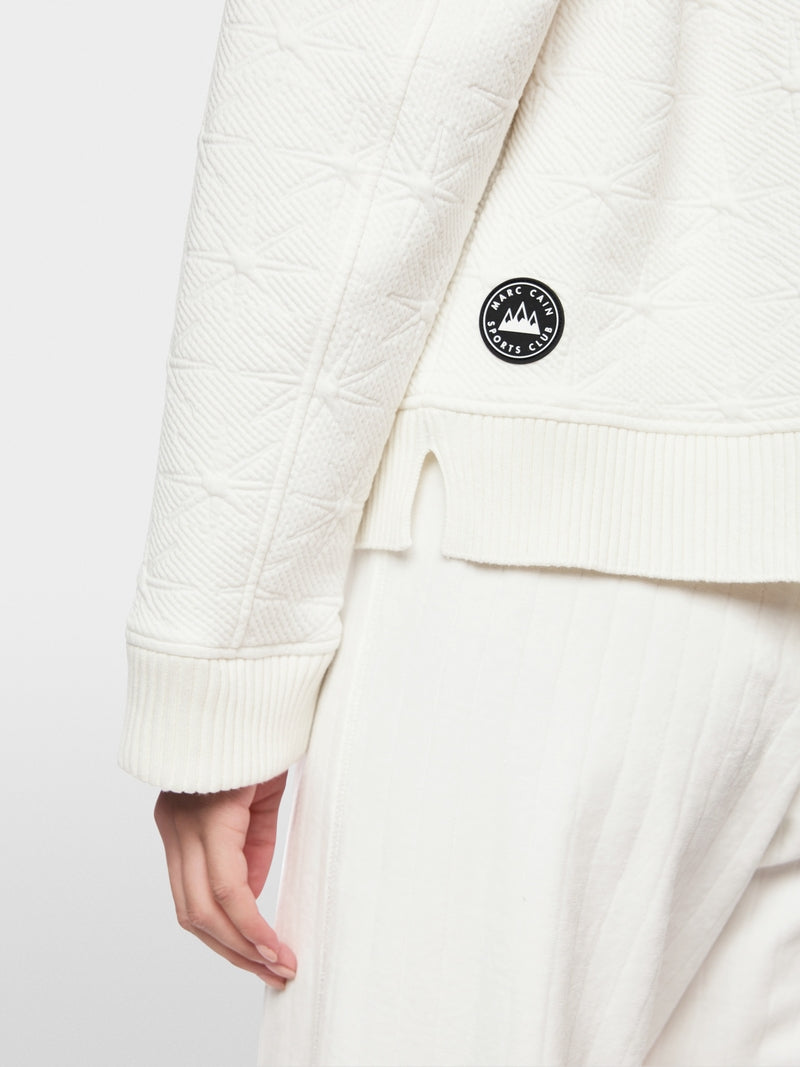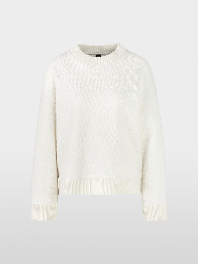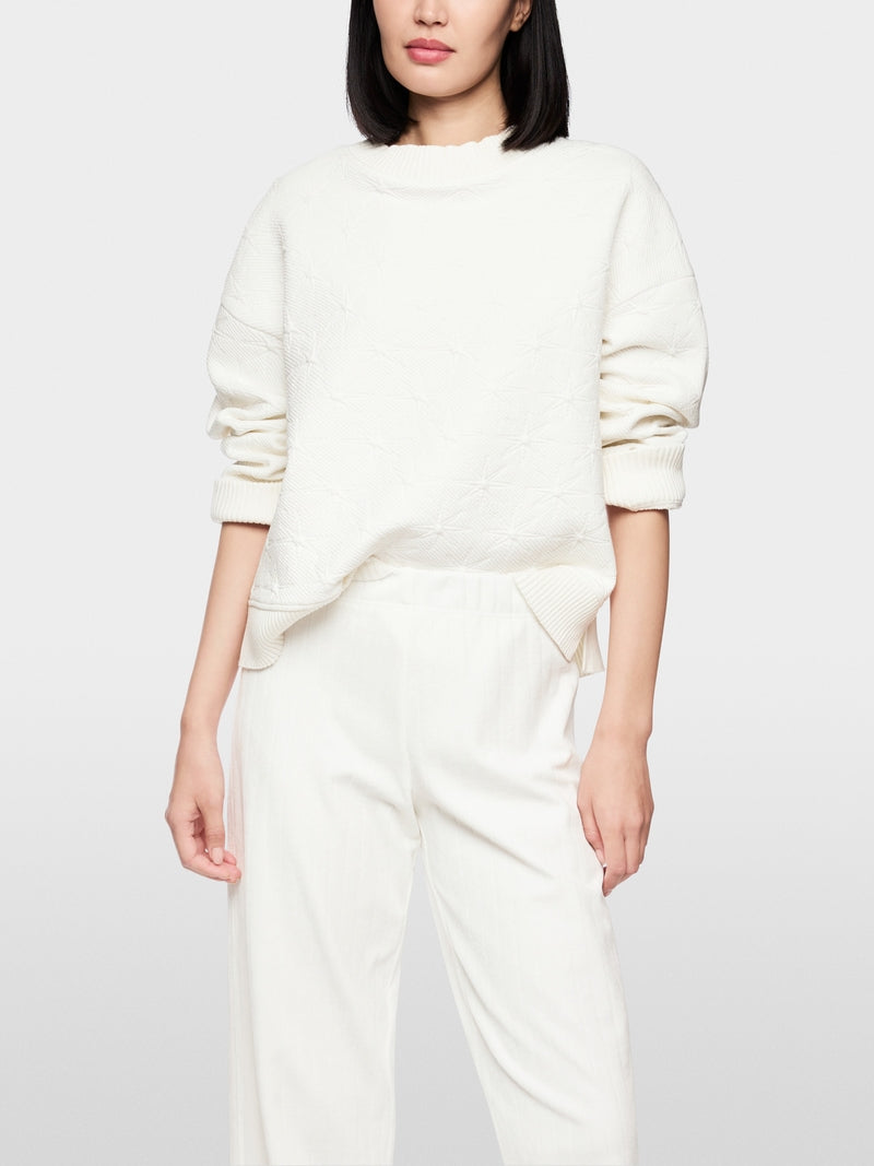 Top in textured material with a raised Snow Star design for a sophisticated look. High-necked, round neckline, collar, cuffs and hemline in a contrasting ribbed knit.