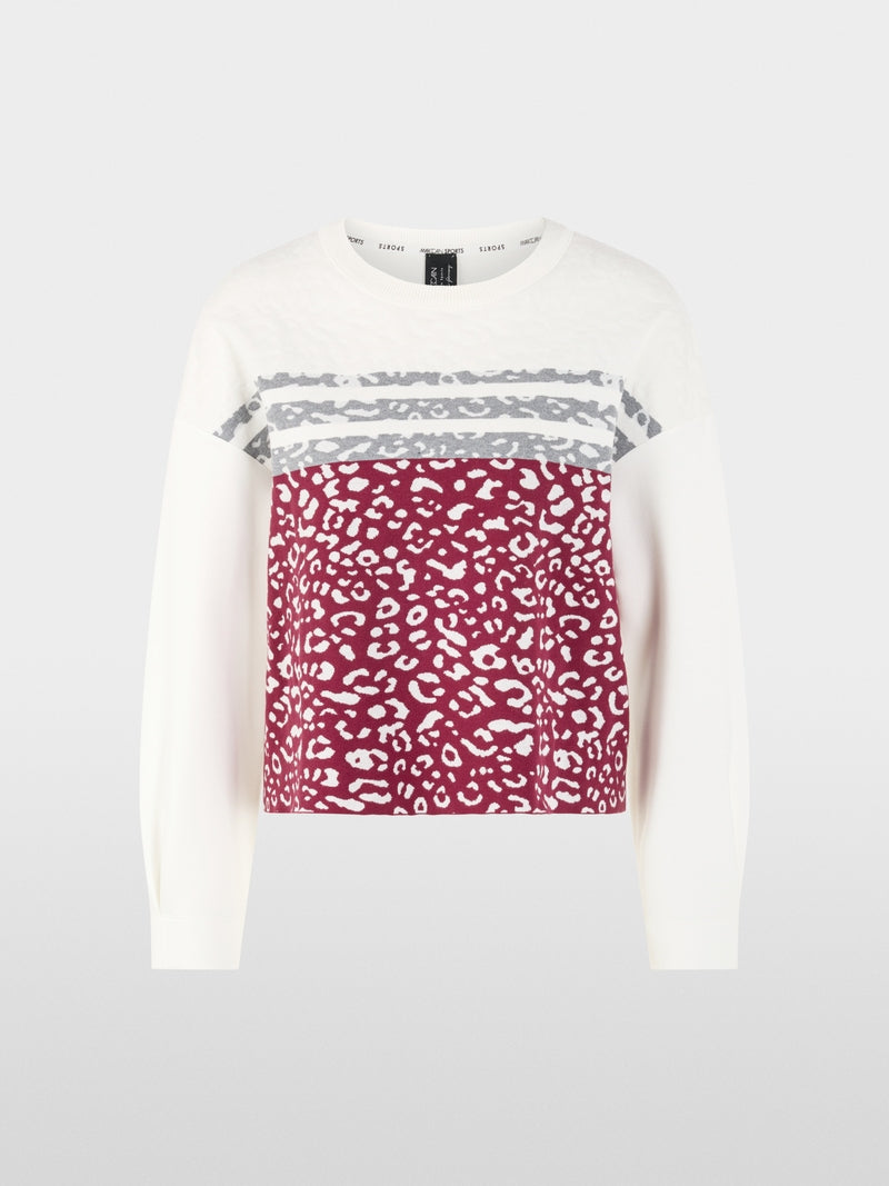 Relaxed top with a multi-colored leopard print. The front of the shirt is a knit while the back and sleeves are made of soft jersey.