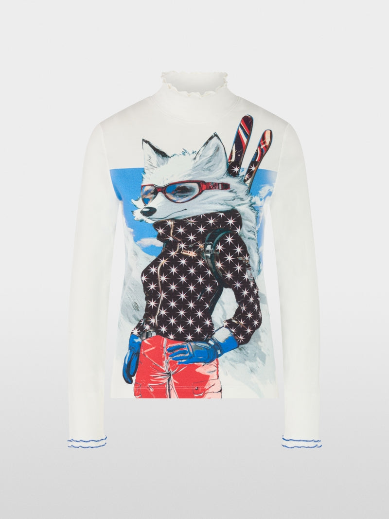 Slim-fit long-sleeved shirt in a fine ribbed material. The front features an eye-catching print with a polar fox motif, while the rolled hem on the sleeves and neckline add subtle details. Made from a soft cotton and elastane blended to ensure optimal comfort and a perfect fit.