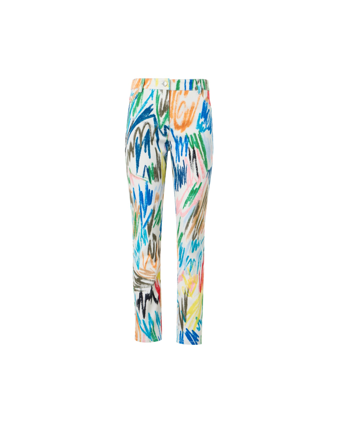 Slim fitting, ankle-length "Maru" jeans by Akris Punto cut from stretch denim with an all-over scribble print.