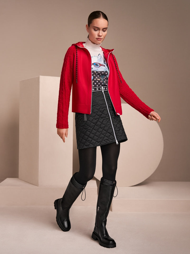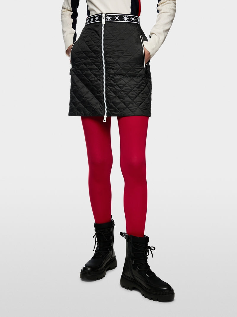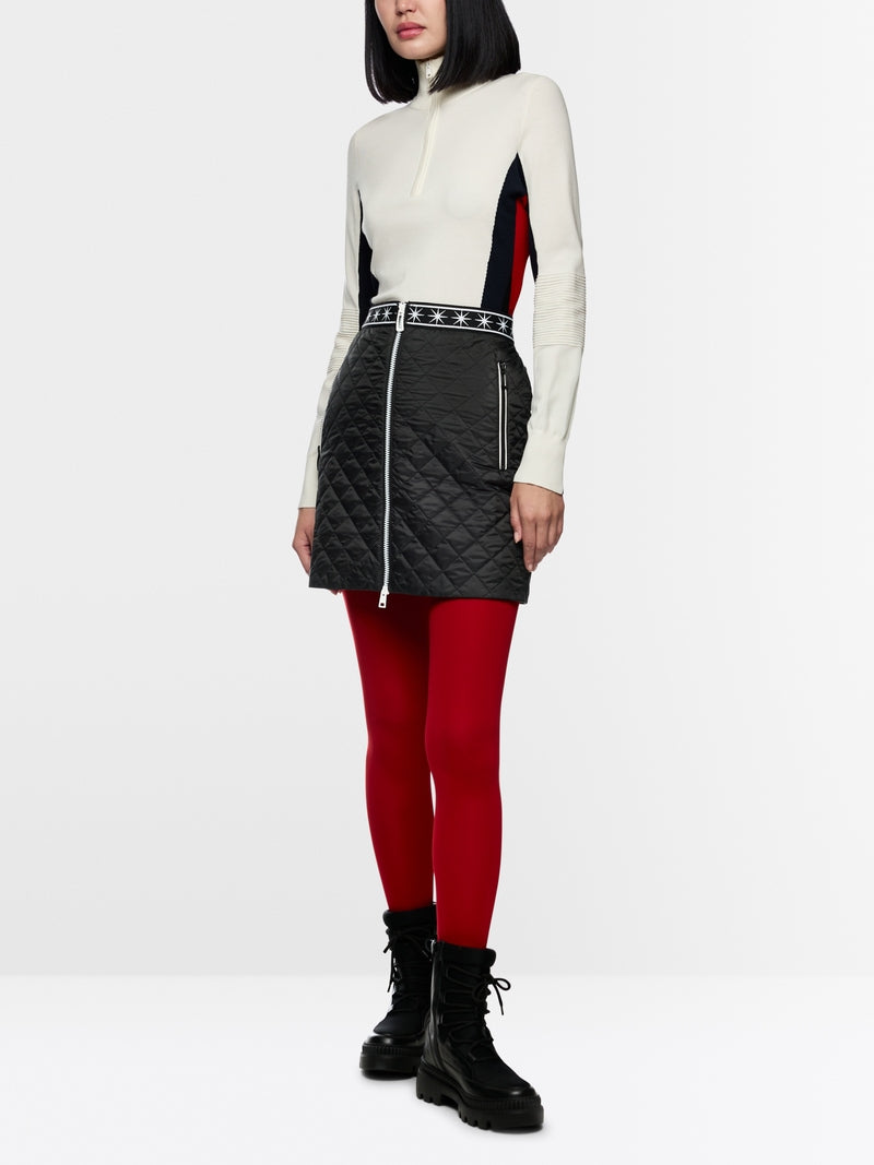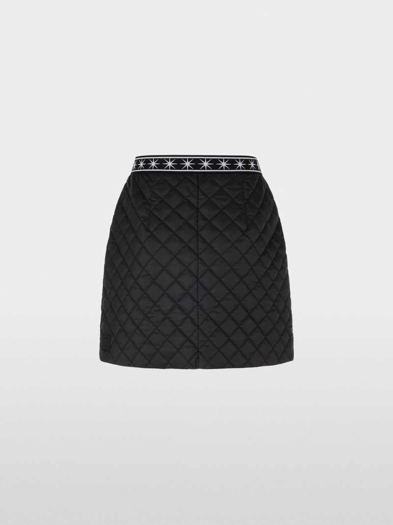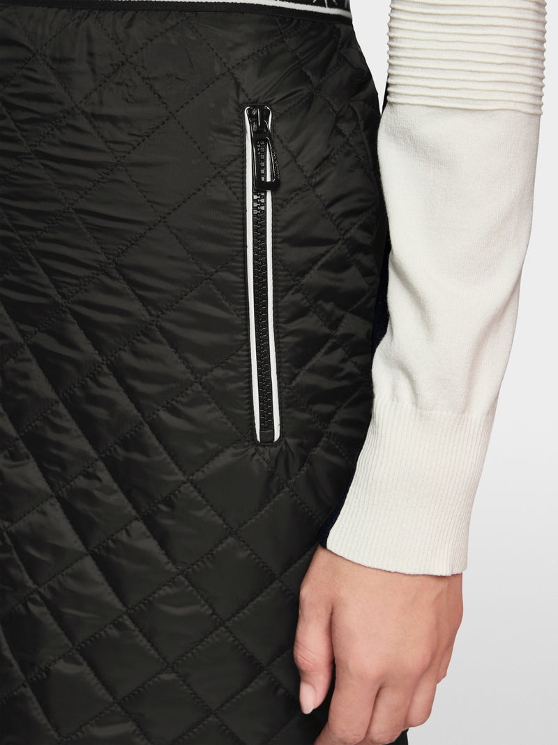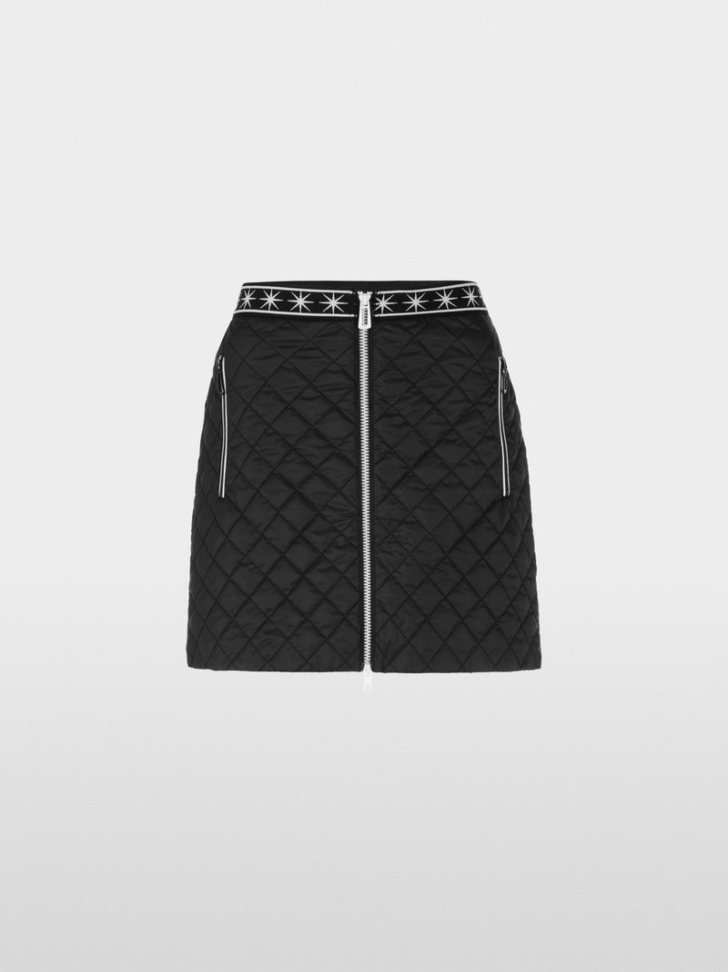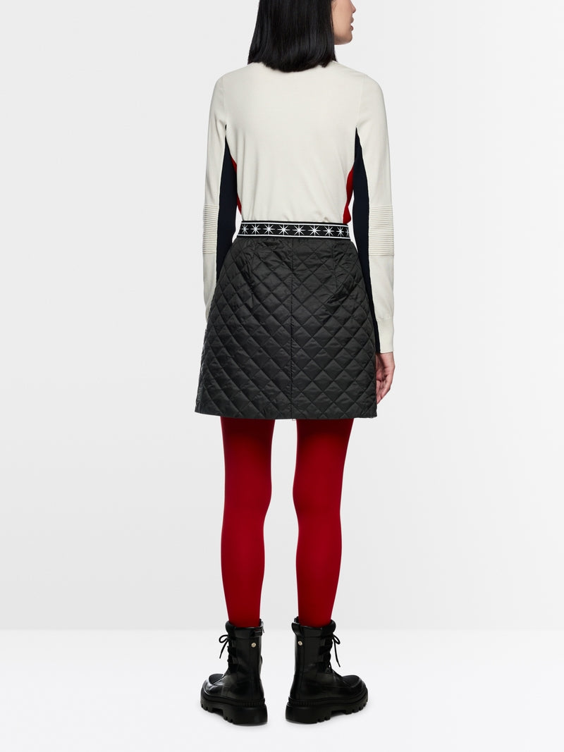 Short, quilted skirt by Marc Cain in a diamond pattern with warm synthetic fiber padding, The full-length two-way zipper at the front emphasizes the sporty look and the side pockets also have a zipper close. The elasticated waistband features the distinctive Snow Stars design – a functional eye-catcher for cold days.