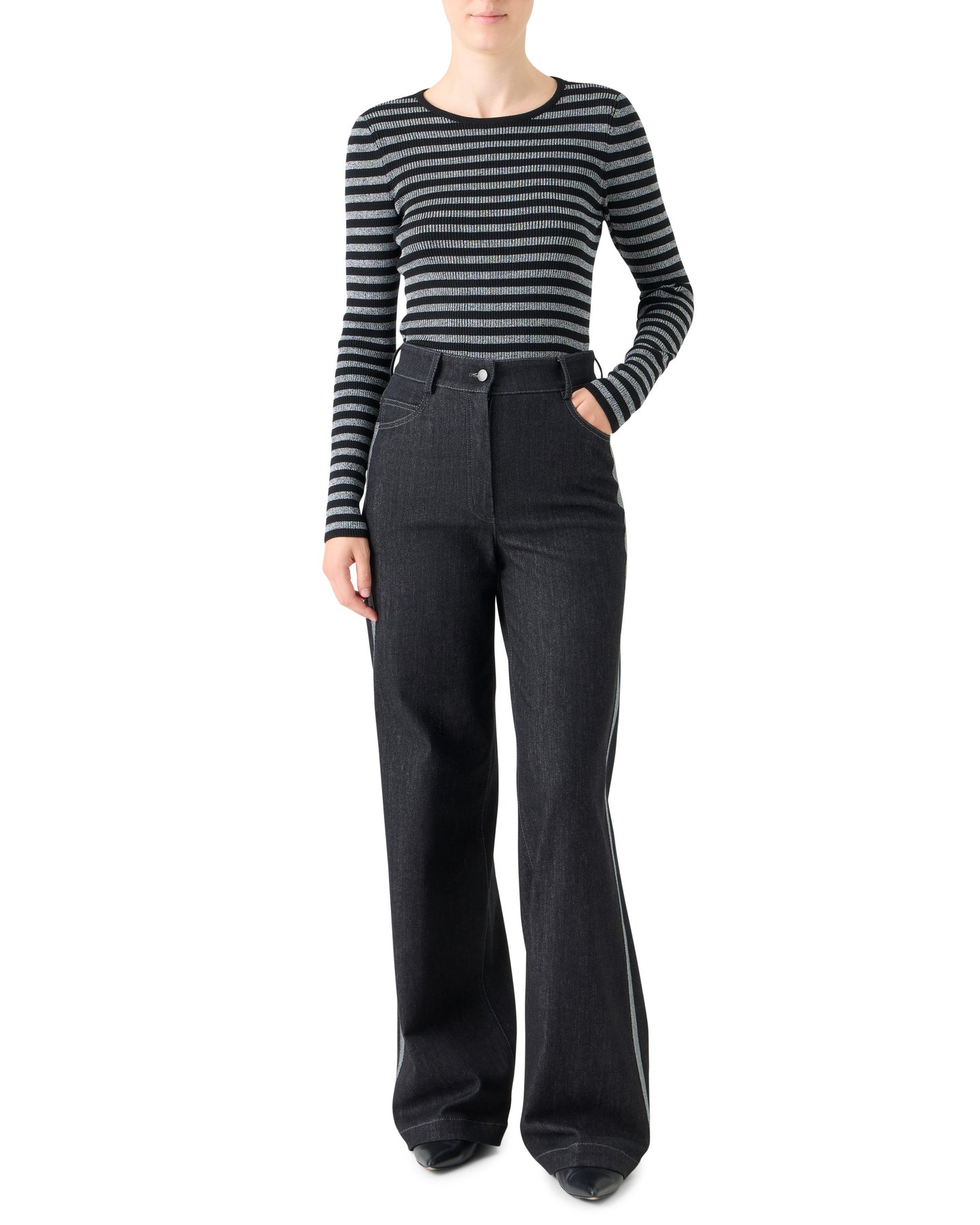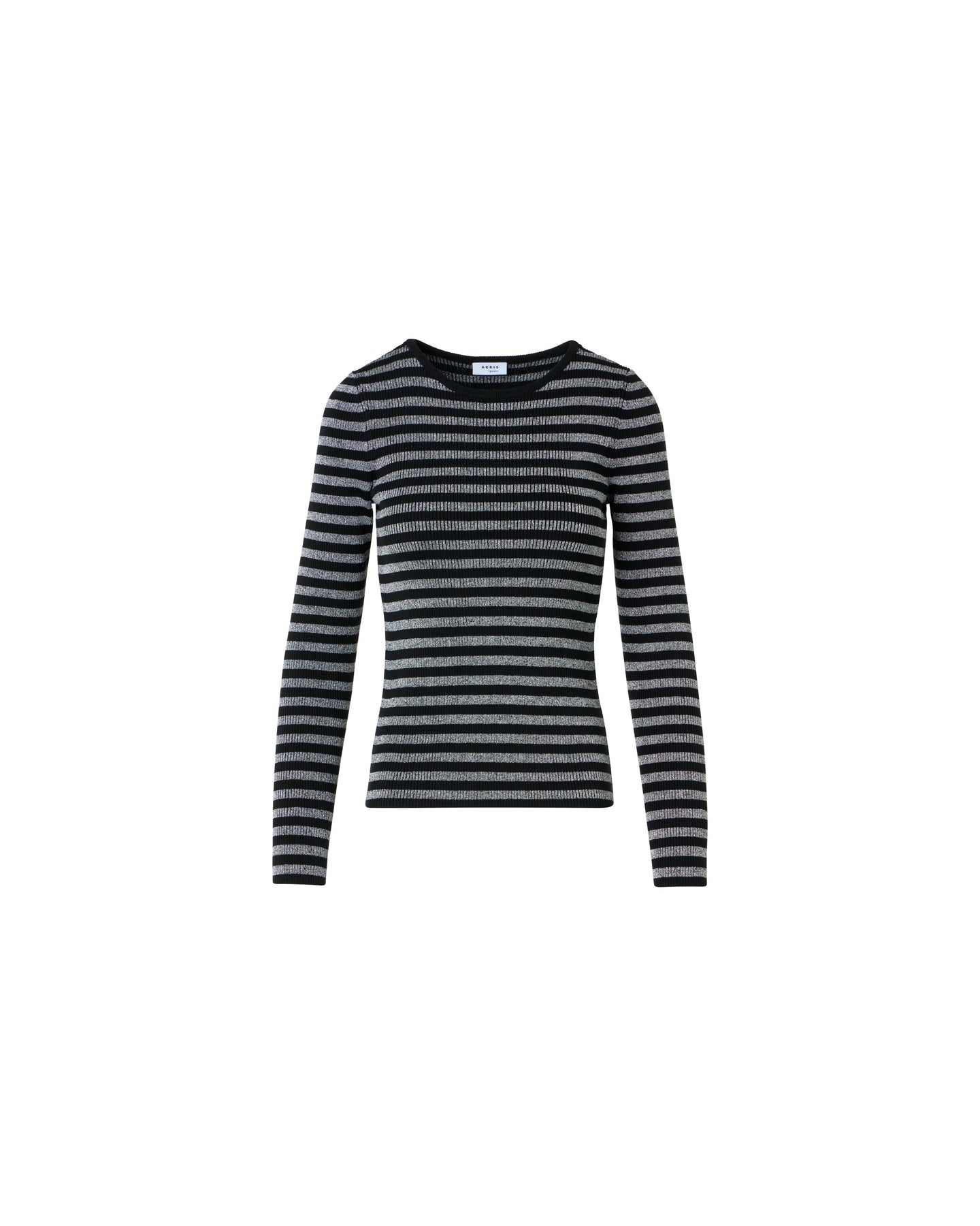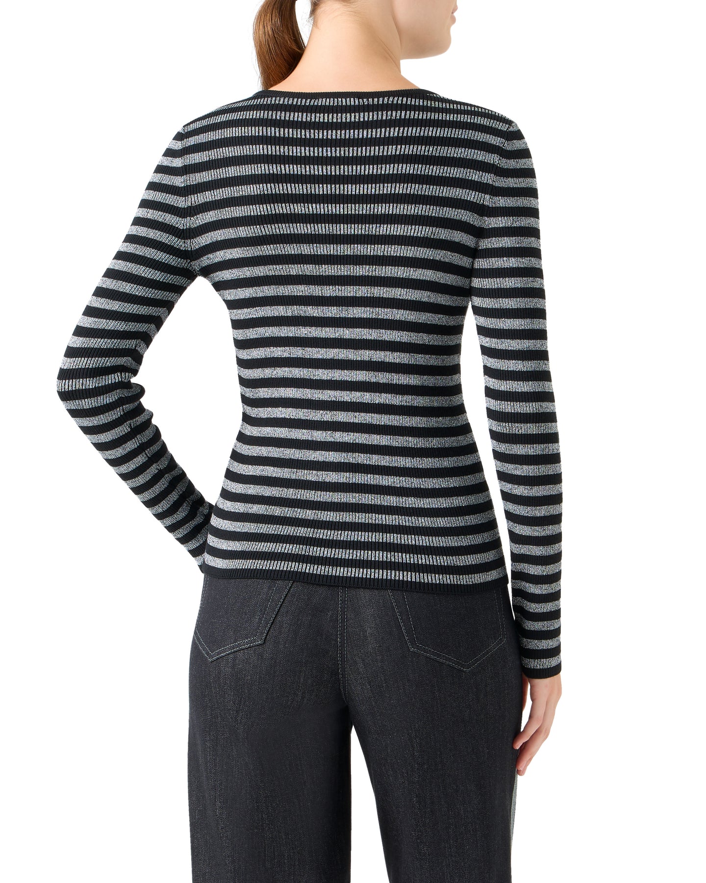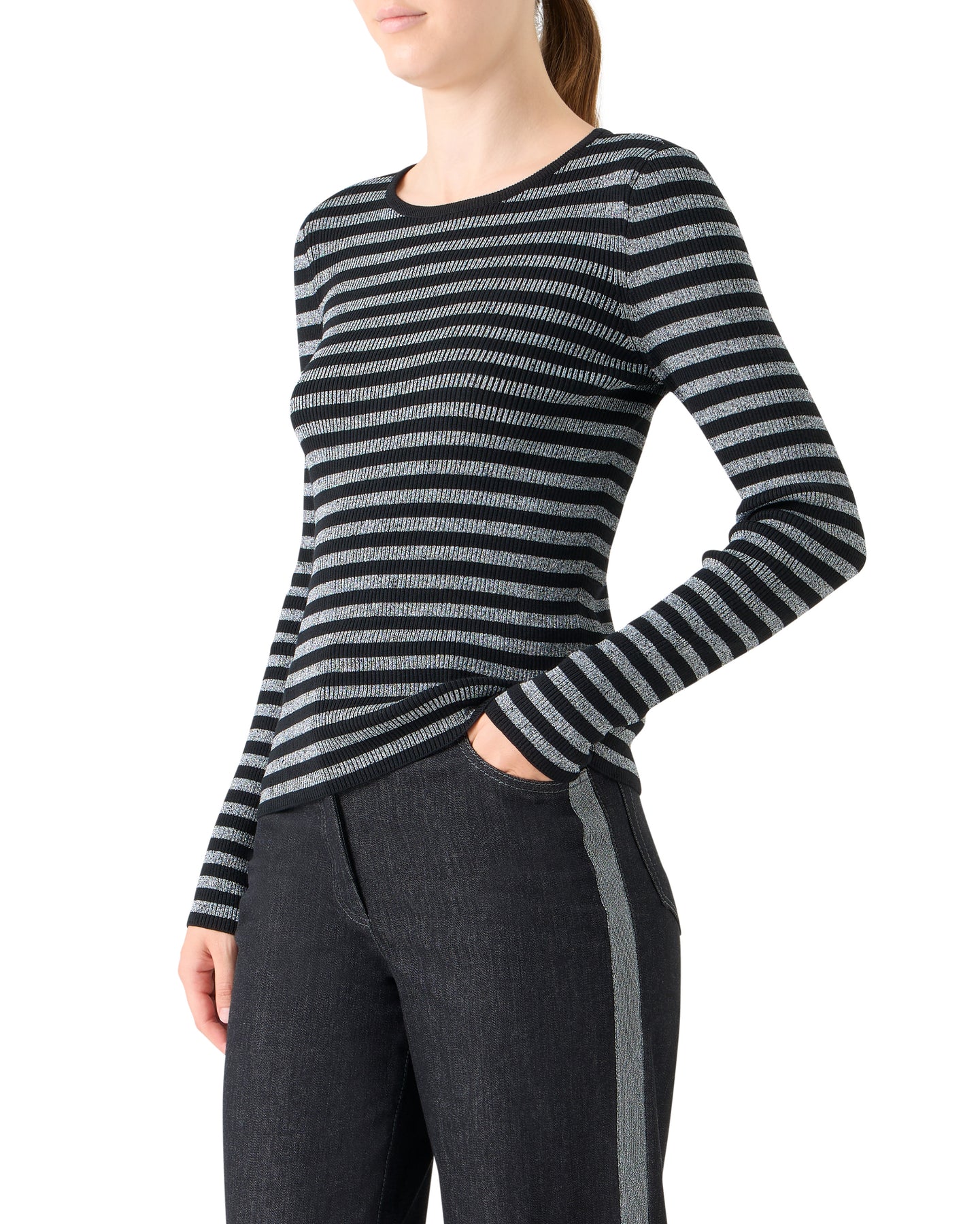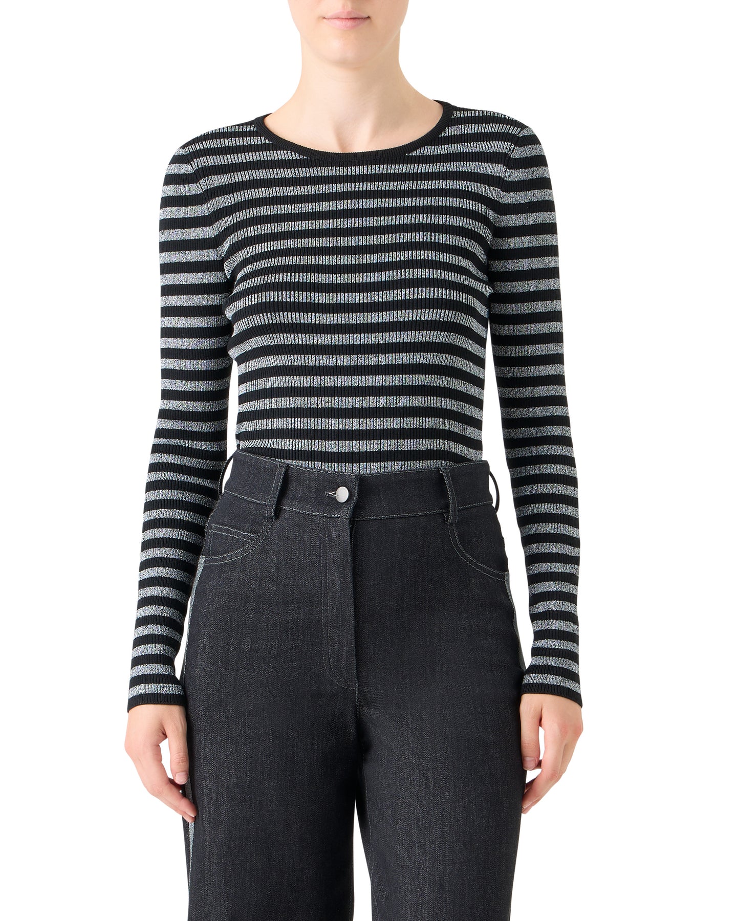 Merino wool, striped sweater by Akris Punto with a metallic lurex threading throughout.